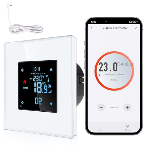 CNBINGO Zigbee Smart termostat infälld med givare, digital rumstermostat för vatten, golvvärme och panna, kompatibel med Alexa och Google Assistant, röststyrning, vit