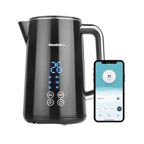 Smart vattenkokare från WeeKett - röststyrning med Amazon Alexa, Google & Siri, temperaturkontroll, håll värmen, LED-pekskärm, rostfritt stål isolerad, cool touch, BPA-fri, svart, 2200 W, 1,7 L