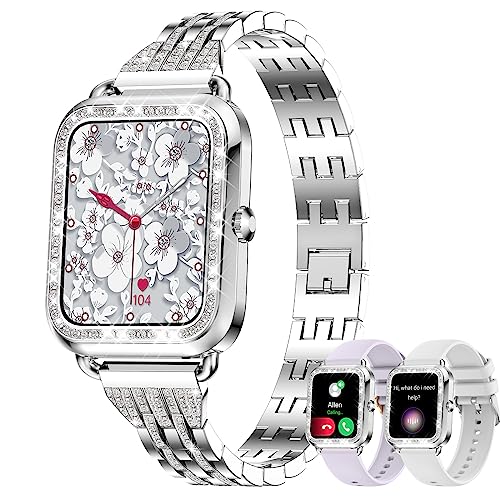 Fitonyo Smartwatch dam med telefonfunktion diamant, 1,29 tum pekfärgskärm, pulsklocka, SPO2, sömnmonitor, menstruationscykel, 19 sportlägen, musik, smartklockor för kvinnor (diamant silver)