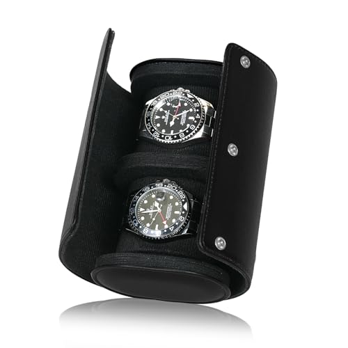 LOEAPEA äkta läder klockrulle resefodral 2 klocklåda för man och kvinna, lämplig för alla klockor och smartklockor under 55 mm förvaringsarrangör (2W-BBL)