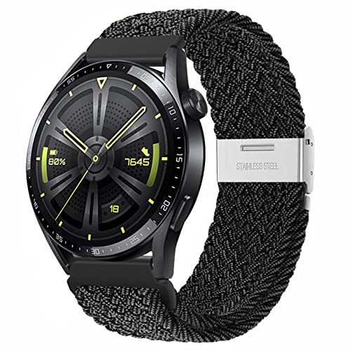 RUIMAYA Flätat klockarmband, 20 mm snabbfrigörande klockarmband andningsbar mjuk nylonrem med justeringsspänne för de flesta smartklockor och klassiska armbandsur, svart