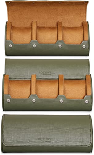 ROTHWELL Resefodral för 3 klockor | Robust bärbart skydd, passar alla klockor och smartklockor upp till 50 mm, Grön/beige, Robust