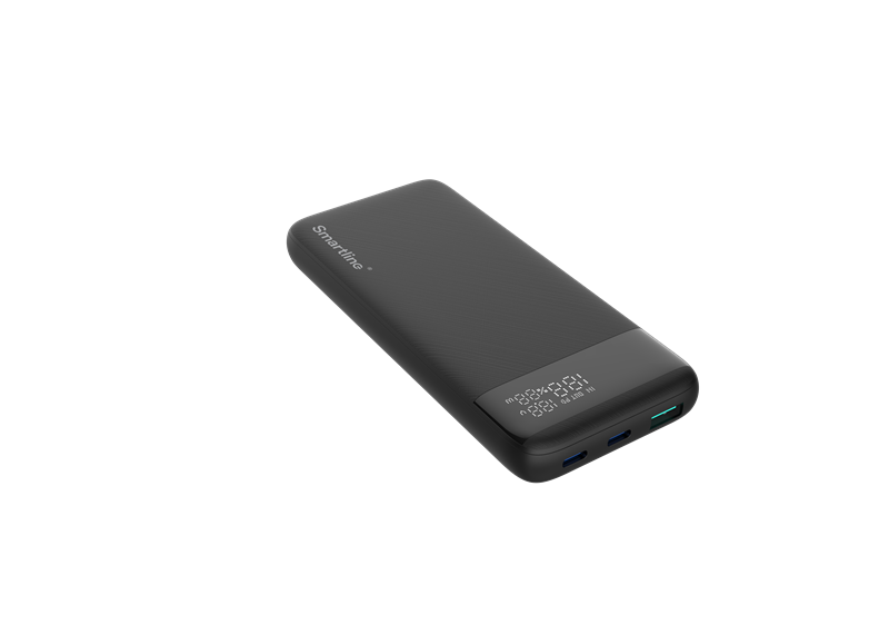 Smartline 10.000mAh Powerbank med PD / QC3.0 & LED-Display - Svart