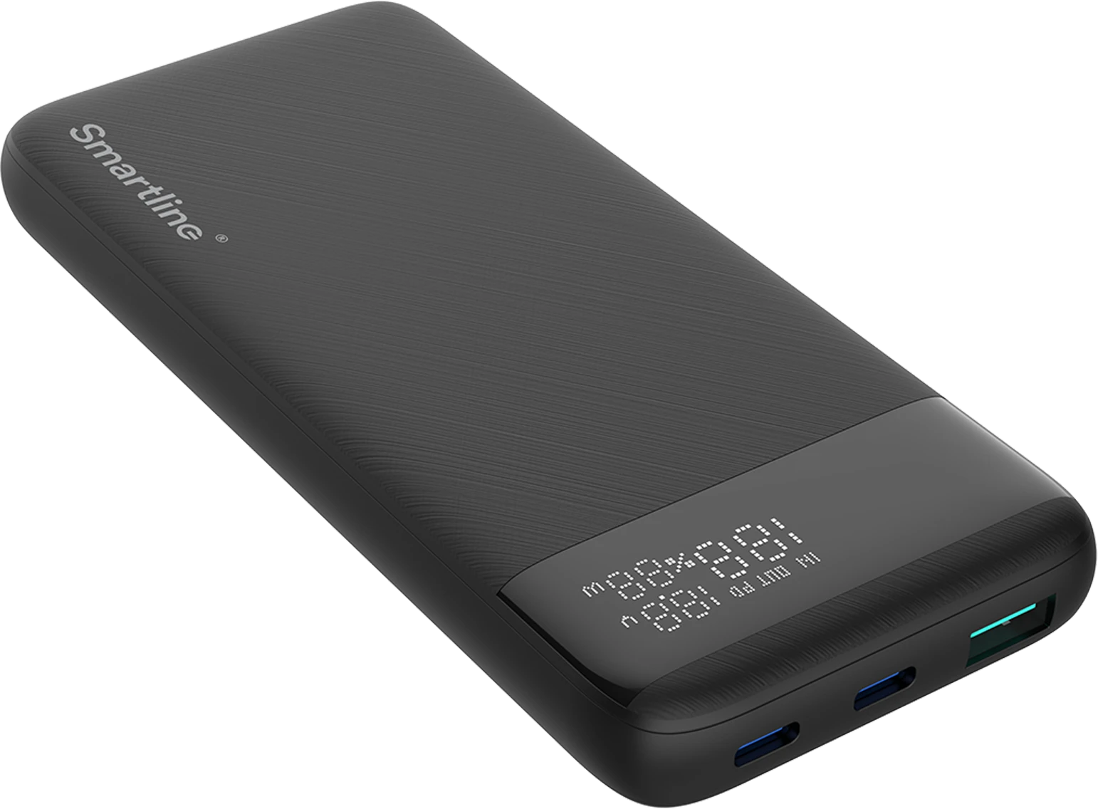Smartline 20.000mAh Powerbank med PD / QC3.0 & LED-Display - Svart