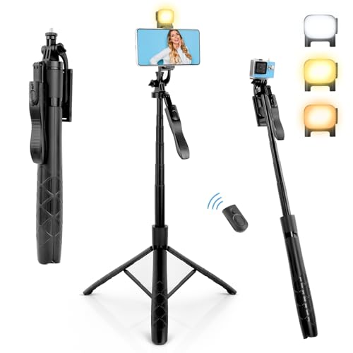 160 cm bärbar smartphone stativ UTEBIT smartphonestativ med 1 360° fyllningsljus tre fot bärbar rotation med Gopro/iPhone/Samsung/Huawei