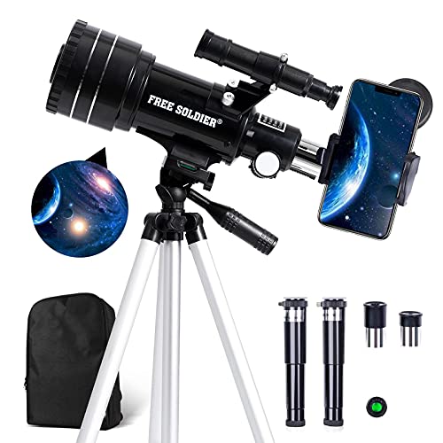 FREE SOLDIER Teleskop astronomi för barn och nybörjare – 15 x 150 x astronomiskt teleskop professionell för vuxna 70 mm kikare teleskop med justerbart stativ, smartphone-adapter och månfilter..