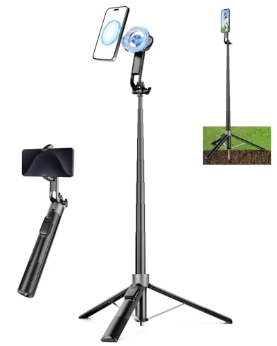 Victiv kraftfull magnetisk iPhone-stativ, 178cm aluminiumstativ med markpinne, ger stöd för golf, smartphone-stativ passar iPhone 16/15/14/13 Pro, stödjer Mag-Safe, med metallring för Samsung
