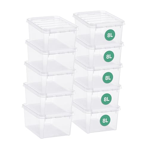 SmartStore 8 L x10-st - Förvaringslådor i plast med lock - 10 års garanti - livsmedelssäker - clips - stapelbara- BPA-fri L34 x B25 x H16 cm