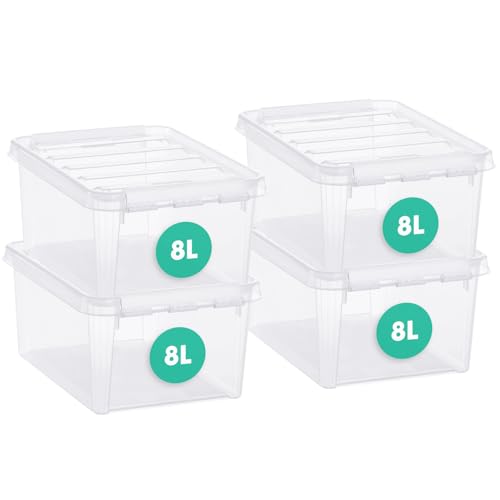 SmartStore 8 L x 4-st - Förvaringslådor i plast med lock - 10 års garanti - livsmedelssäker - tillverkad i Sverige - stapelbara- L34 x B25 x H16 cm