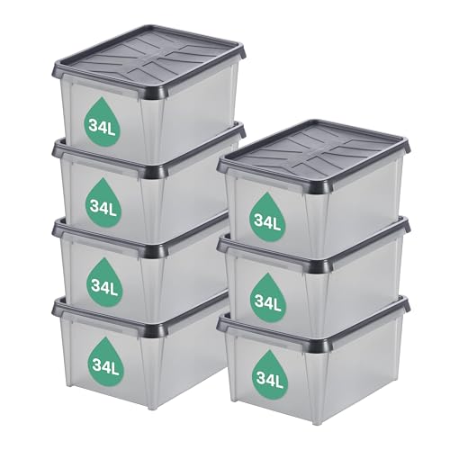 SmartStore Dry 34 L - Flerpack med 6 Vattentäta Förvaringslådor - Skyddar Mot Fukt, Damm, Insekter och Temperaturvariationer - medelstorlek - BPA-Fri Plast - Grå transparent - 34 L - 50x40x27cm