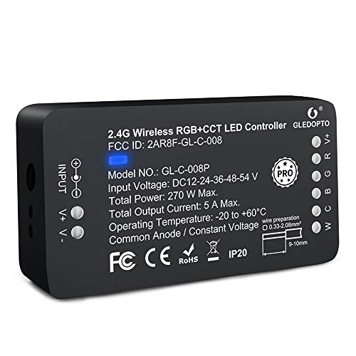 GLEDOPTO 5 i 1 smart LED-remsa styrenhet Zigbee 3.0 RGBCCT RGBW RGB WW/CW DIMMER ljuslistanslutning 2,4 G RF fjärrkontroll Alexa röststyrning app med Amazon ECHO PLUS Tuya SmartThings DC 12–54 V