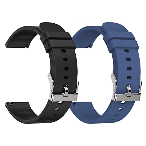 Woednx 20 mm ersättningsband för smartklocka, mjuk hudvänlig silikon snabbfrigöring, smartwatch-armband, Svart + blå, 20mm x 220mm, modernt