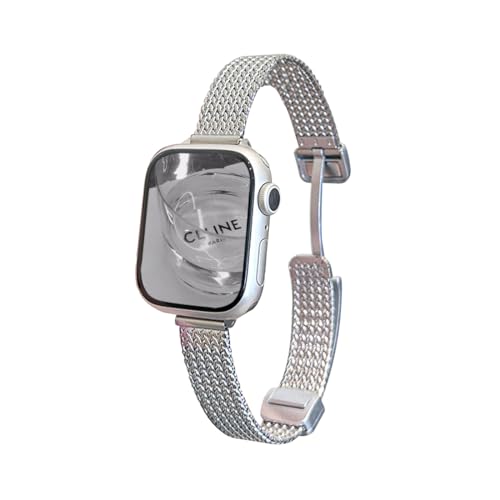 Metallarmband kompatibelt med Apple Watch-band 42 mm/44 mm/45 mm/49 mm, Milanese Länkband, Magnetiskt spänne, Rostfritt stål, Smartwatch-armband för kvinnor, silver, Piccola, Rostfritt stål, Ingen