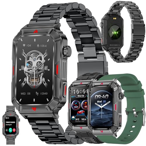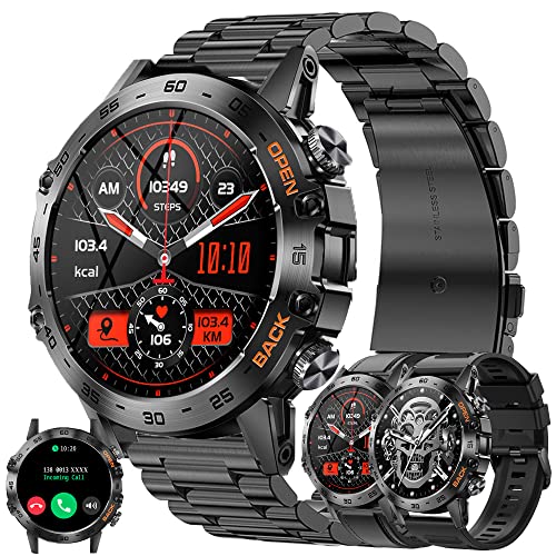 Military Smart Watch för män (Svara/Ring samtal), 1.39" HD Outdoor Smartwatch med Kompass/Puls/SpO2/Sömnmonitor/2 Remmar, 100+ Sport Fitness Tracker för Android IOS