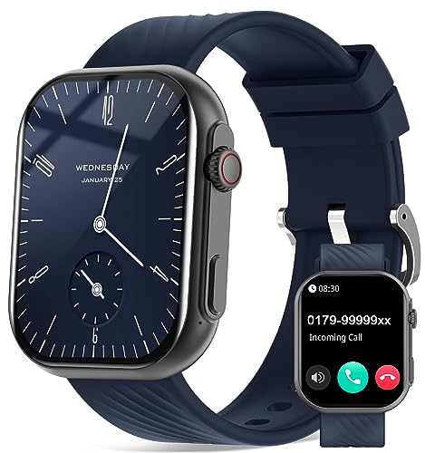 Bebinca Smartwatch för kvinnor och män med telefonfunktion, 1,7 tum fitnesstracker med stegräknare, SPO2, puls, IP68 vattentät sportklocka för Android iOS (blå)