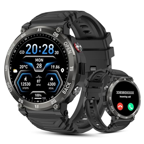 Smartwatch Män med Telefonfunktion, Fitness Tracker 1,43" HD Pekskärm, Smartklocka med Sömnmonitor Pulsmätare 110+ Sportlägen Sportklocka Fitnessklocka Armbandsur för Android IOS (Pengar)