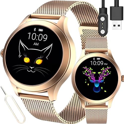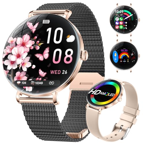 Fitonme Smart klocka för kvinnor med Bluetooth 5.2-samtal, 1,39 tum, HD rund smartwatch med 2 armband, 120+ spO2 sportlägen, puls sömn, kalorier, smart klocka för Android iOS