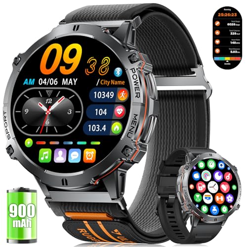 LIGE Smartwatch för män med stort batteri 900 mAh, 1,73 tum smartwatch för män med kompass barometer, 110 sportlägen, IP68, vattentät, puls-/sömnmonitor för Android iOS