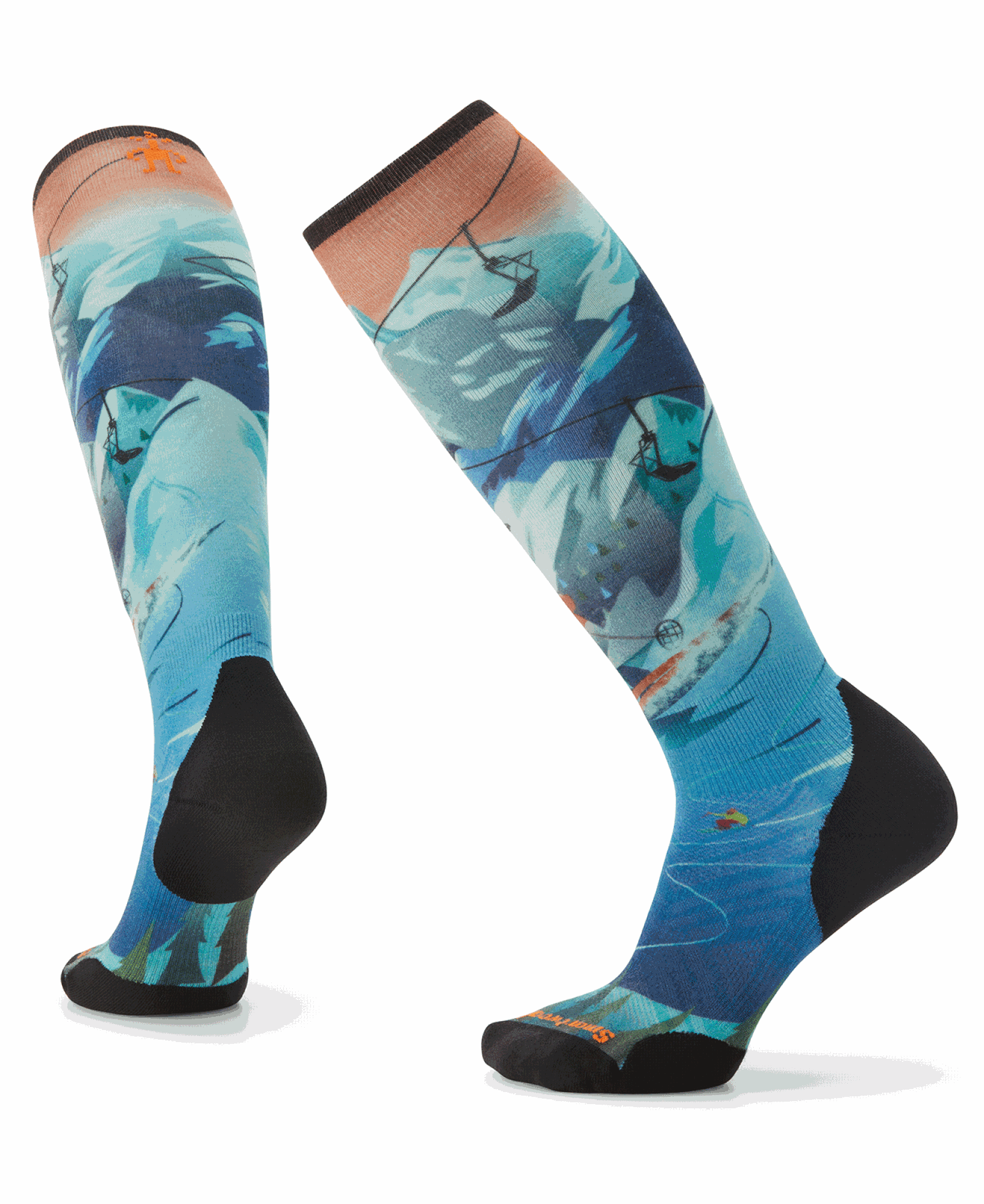Smartwool Ski Zero Cushion POW Print OTC Socks Twilight Blue