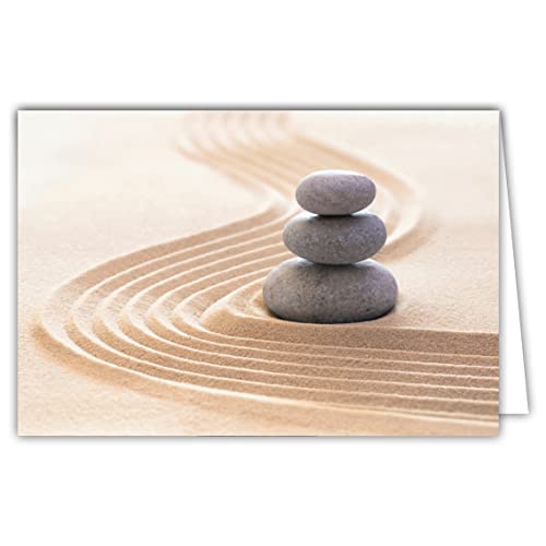 Afie 68-4012 vitt innerkort med kuvert - småsten sandträdgård zen meditation vila positiva energier naturkrafter för dig grattis på födelsedagen tack för modet