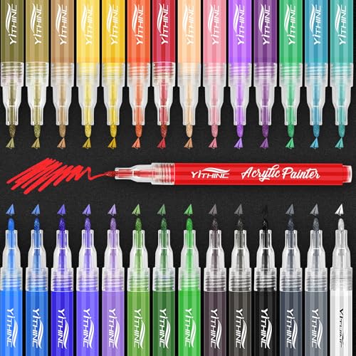 YITHINC Färgpennor För Stenmålning,Småsten,Glas,Keramik,Porslin,Uppsättning Med 28 Akrylfärgmarkörer Extra Fin Spets 0,7 Mm