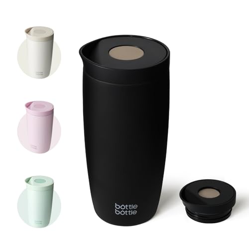 BOTTLE BOTTLE Termosmugg 500 ml To Go – premium isoleringsmugg av rostfritt stål, läckagesäker, BPA-fri, snabbpressförslutning, dubbelväggig, håller dryckerna varma och kalla under lång tid (svart)