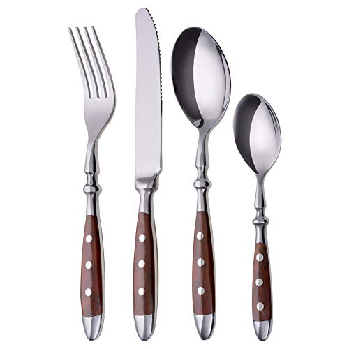 GRÄWE bestickset för 6 personer av rostfritt stål, tung, rustik, bestickset 24 delar, smidda bestick med bruna handtag Serie Nürnberg