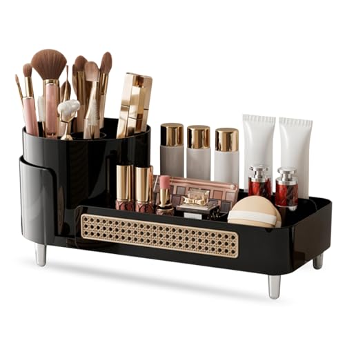 360° roterbar smink, kosmetisk hållare för toalettbord, badrum, hudvård, sminkborsthållare, multifunktionell kosmetisk organisatör, parfymlåda (svart)