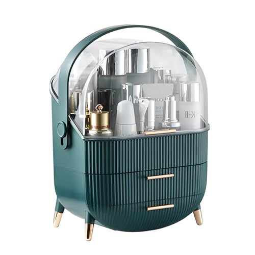 Sminkförvaring med bärhandtag, lådor och lock, multifunktion, smink, skönhetsförvaring, låda, bärbara smycken, tvättställ, display för sminkbord, borste, skincare hårtillbehör, bänkskiva