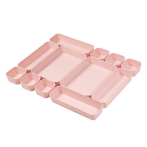 Backerysupply Uppsättning av 12 rosa färg plast skrivbordslåda organiserare för smink badrum kontor kök sminkbord låda behållare