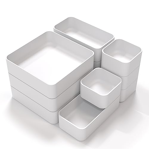 CHANCETSUI 11-delad stapelbar låda organiseringsset, flera storlekar, skrivbordslådor, organiseringsbrickor, fåfänga förvaringskorgar för förvaring av smink, kontorsmaterial, redskap i badrumsskåp,