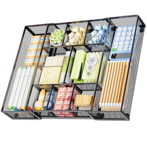 Marbrasse Lådor för Skrivbordsorganisering,Mesh Desk Tray med 10 Justerbara Fack,Skrivbordstillbehör & Förvaringsprodukter,5 Avdelare Låda för Kontorsmaterial,Smink & Hushållsartiklar(Svart)