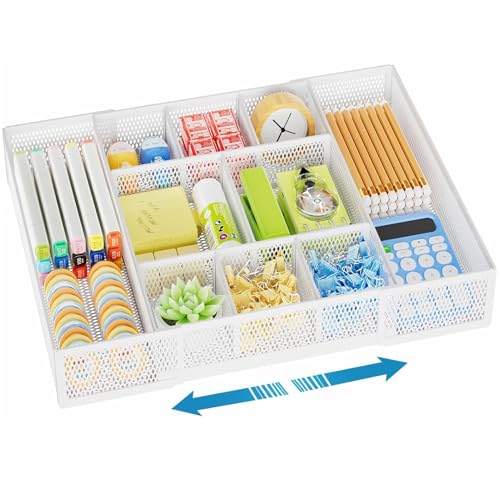 Marbrasse Lådor för Skrivbordsorganisering,Mesh Desk Tray med 10 Justerbara Fack,Skrivbordstillbehör & Förvaringsprodukter,5 Avdelare Låda för Kontorsmaterial,Smink & Hushållsartiklar(Vit)