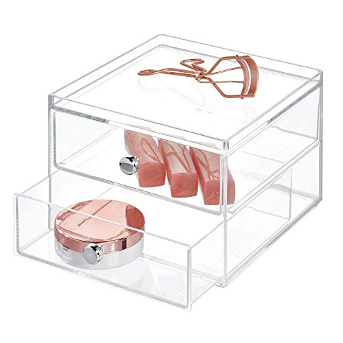 iDesign Lådor sminkarrangör | högkvalitativ förvaringslåda för smink, kosmetika och mer | lådlåda med 2 lådor | plast transparent, 17,8 x 12,7 x 16,5 cm