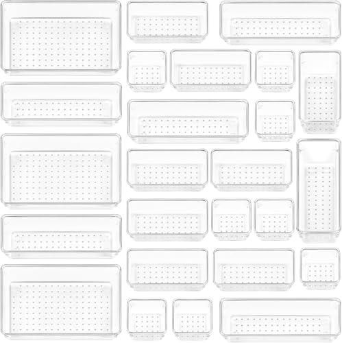 Vtopmart 25 stycken lådor organisatör med 4 storlekar, lådor organisationssystem, toalettbord organisatör kan användas för smink, kök, badrum, kontor