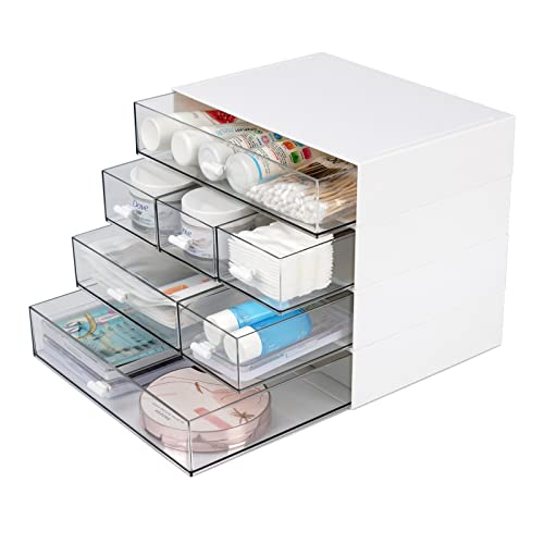 Sorbus genomskinlig kosmetisk sminkorganisatör - smink- och smyckesförvaring, fodral och display - rymlig design - bra hållare för byrå, badrum, sminkbord och bänkskiva (3 stora, 4 små lådor)
