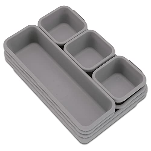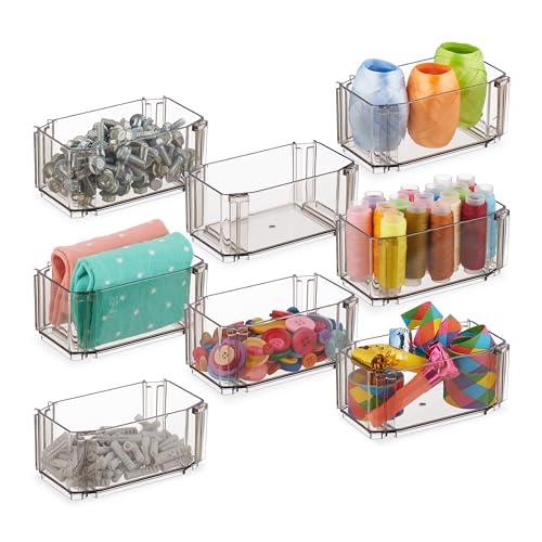 Addis 8 st sammankopplade lådor, organiserare, plast, förvaringsbrickor, avdelare för kök, kontor, skrivbord, smink, kläder, smycken, hantverk, badrumsorganisering, grå