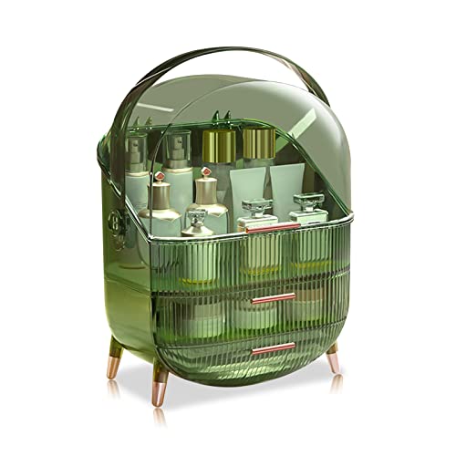 Galatée retroserie bärbar sminkarrangör, 180° roterbar, förvaringslåda för smink, med dammsäkert lock, skönhetsorganisatör med 2 lådor och bärhandtag (Retro-grön)