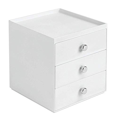 iDesign 36262 Lådor sminkförvaring med 3 lådor, högkvalitativ förvaringslåda för smink, kosmetika och co, plast, vit