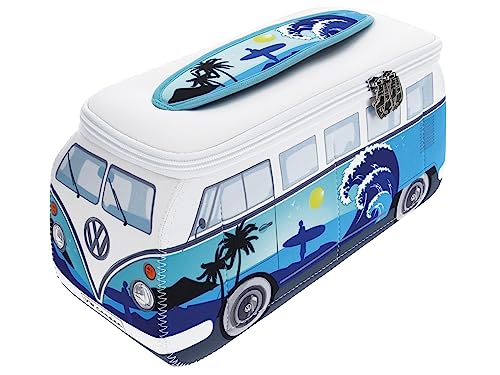 BRISA VW Collection – Volkswagen Neopren universal-smink-kultur-reseapotek-väska-pennväska T1 Bulli buss (surf/ljusblå/liten)