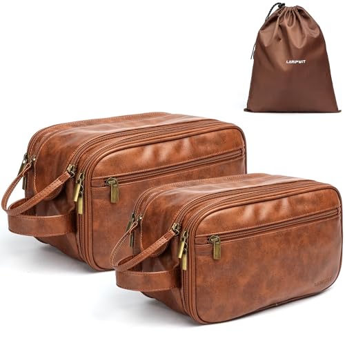 Laripwit Resetoalettväska för män PU-läder rakningsset vattentålig toalettartiklar organisatör, Brun, Small 1 + Large 1, toalettväska, tvättväska, badrumsväska, rakningskit väska, smink kosmetikväska,