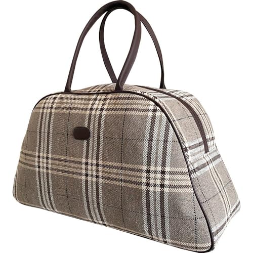 EACHY Sminkväska, kosmetiska väskor med stor kapacitet för kvinnor, vattentät bärbar påse öppen platt toalettväska smink organiserare med avdelare och handtag, Aa-brun, M, Rustik