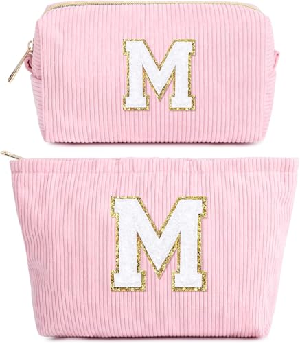 2 st sminkväska för kvinnor, rosa kosmetisk väska för resor, toalettväska med bokstäver, bröstkorgsväska för smink, julklapp till mamma kvinnor flickvänner bästa vänner, Rosa, M