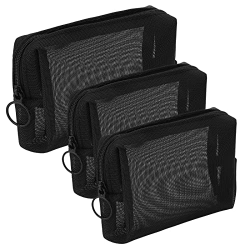 WLLHYF 3 delar liten ficka med dragkedja, mini nät kosmetiska väskor bärbar myntväska sminkväska nät förvaringsväska för kvinnor resor skönhet smink läppstift kosmetiska tillbehör organisatör, svart,