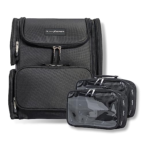 GlamSeries GlamPacker kosmetik väska, smink ryggsäck ergonomisk och utökbar, necessär med värmeskyddsfack, beauty bag för makeup artister, frisörer