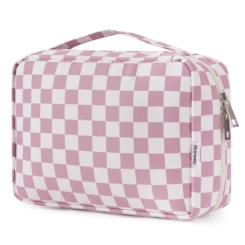 Narwey Resa hängande toalettartiklar tvättväska smink kosmetisk väska organiserare för kvinnor, Gråblå schackbräde, L