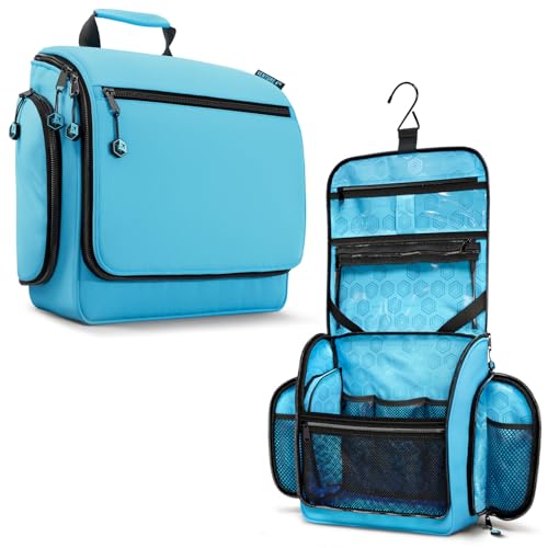 Hängande resetoalett smink tvättväska och organiserare med stark metall vridkrok och TSA avtagbar klar väska. Perfekt för män och kvinnor (ljusblå) stor