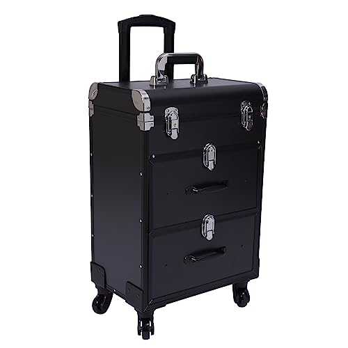 Kosmetisk väska vagn aluminium kosmetisk rullväska med lås skönhetsfodral stor makeup resväska arrangör för resor nagelkonst hårstyling smink 36 x 23 x 58 cm, svart, Retro
