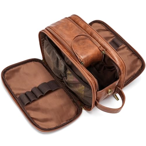 Laripwit Resetoalettväska för män PU-läder rakningsset vattentålig toalettartiklar organisatör, Brun, L, toalettväska, tvättväska, badrumsväska, rakningskit väska, smink kosmetikväska, hygien- och