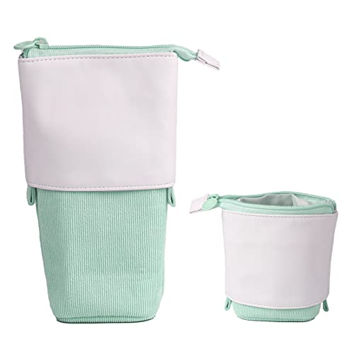 JANREAY 2-i-1 sött pennfodral teleskopiskt pennfodral, popup pennhållare, stativ-up infällbar pennhållare smink väska för studenter, kontor kvinnor, flickor pojkar, Grön, Carry-On 20-Inch,